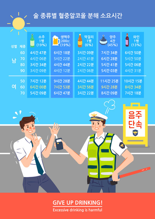 경찰은 단순 사고 처리를 위해 출동했다. 상황을 정리하던 경찰은 A 씨가 음주 상태라고 느꼈다. 음주 측정 검사에서 A 씨는 혈중알코올농도는 면허 정지 수치(0.03~0.08%)로 나왔다. 전날 술을 마신 A 씨는 술이 모두 깨지 않은 상태에서 운전대를 잡는 ‘숙취 운전’을 한 것으로 파악됐다.