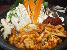 '. 요즘같이 날이 추우면 더욱 생각나는 음식 중 하나이다. 야채와 당면 등을 추가하여 푸짐하게 즐기다, 남은 양념에 김가루와 밥을 넣어 고소하게 볶아 즐기는 볶음밥까지 필수 코스! 진한 국물을 먹다 보면 절로 소주 한잔 생각나는