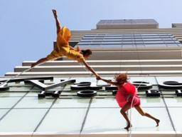 [서소문사진관] 스파이더걸? 28층 고층건물 외벽서 춤추는 요정들
