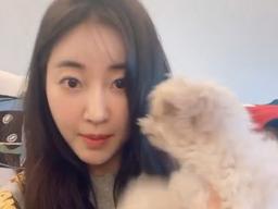 의 모습이 담겼다. 긴 생머리를 내려뜨리고 반려견과 함께 영상을 찍고 있는 김...