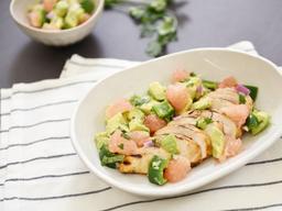 에 자몽과 할리피뇨를 넣고 만든 살사소스를 곁들이는 음식입니다. 기...