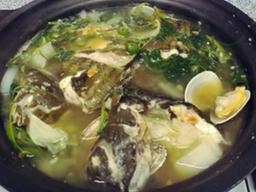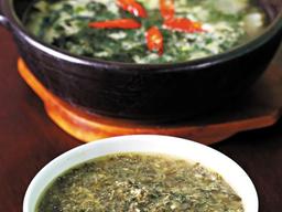 은 양념에 진한생선 국물 맛이 나는 매운탕이 아닌 담백한 쑥향이 나는 맑은국이다. 부들부들한 약쑥과 함께 끓여낸