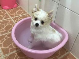 시키러 화장실 데려간 비숑이 곰인형으로 변신했어요”