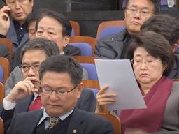 '을 폄훼하는 듯한 발언이 취재진 카메라에 포착돼 논란이 예상됩니다. 2일 서울 여의도 국회에서 자유한국당 의원총회가 열렸습니다. 회의 시작 전 한국당 의원들은 '필리버스터 보장하라'가 적힌 피켓을 들고 자리에 앉아 서로 인사를 나눴습니다. 이때 그 자리 부근에서...