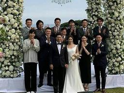 씨의 결혼식 사진이 화제다. 지난 1일 제주도 서귀포시에서 진행된 두 사람의 결혼식에 참석한 한 하객이 최근 사회관계망서비스(SNS)에 현장 사진을 공개했다. 사진에는 배우 안성기, 박중훈, 송중기, 한재석, 황정민, 장동건, 이종혁, 지진희, 추자현·우효광 부부...