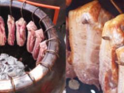 쐬어 말려서 풍미를 돋우고 보존기간을 늘리는 조리법인데요. 훈연 처리를 거친 고기는 수분을 줄여서 보존 기간을 오래 늘려줄 뿐 아니라 맛과 풍미, 색감이 좋아지죠! 기름기도 쫙 빼고, 나무 향도 배어나와서 더 맛이 좋다는 훈연