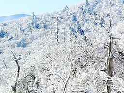 를 두툼한 솜옷처럼 입고 있는 나뭇가지들은 영락없이 푸른 바닷물 속에서 춤추고 있는 하얀 산호의 모습니다. 지난해 여름 울릉도에서 스킨스쿠버다이빙을 하며 수심 45m 바닷속에 본 은빛 해송(海松·천연기념물 456호)을 산속에서 다시 만난 기분이었다. 엄밀히 말하면 계방산의 ‘