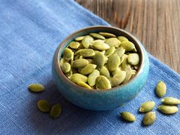 ‘슈퍼씨앗’의 하나다. 호박 씨는 알고 보면 영양소의 보고다. 호박씨 28g에는 섬유질 1.7g, 탄수화물 5g, 단백질 7g, 지방 13g이 들어 있다. 망간은 일일 섭취량의 42%, 마그네슘은 일일 섭취량의 37%가 들어 있다. 꽉 찬 영양 성분으로 인한