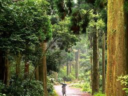 풍경의 난대 원시림이다. 태양을 보고 싶은 나무들은 하늘을 향해 경쟁적으로 솟아오르면서