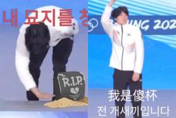 선수 차민규 남자 500m 경기에서 은메달 획득 시상식에서 먼지 터는 장면 포착돼 중국인들에게 조롱 “경건한 마음 차원에서 한 것”이라 밝혀 연합뉴스 지난 12일, 베이징 동계올림픽