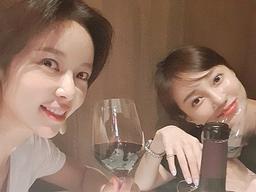 와 오랜만에 조우했다. 배우 황정음은 3일 오후 자신의 인스타그램을 통해 "오랜만에 아짱이랑. 쌍갑주케이크 사서 달려와준"이라는 글과 함께 사진 세 장을 게재했다. 이번에 공개된 사진에는 오랜만에 만나 와인을 마시며 회포를 풀고 있는 황정음,