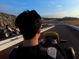 에 위치한 '카트레이싱 테마파크' 백록담 중심으로 내리막 경사 갖춘 지형 300㎏ 카트가 중력 가속도 이용해 질주 달리다보면 푸른 제주바다 풍경이 일품 볕 좋은 날엔 반대편 비양도가 한눈에 제주