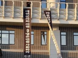 의회에 걸린 항의 현수막 (예천=연합뉴스) 김효중 기자 =