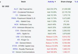 은 2분기 어떻게 자산을 배분했는지 한번 알아보자. 지분을 늘린 기업은 금융, 에너지, 화학 소재, 보험, 엔터테인먼트, 빅테크 섹터에 속해 있었다. 지분을 줄인 기업은 금융, 식료품, 자동차, 부동산, 바이오, 통신 섹터에 속해 있었다. ALLY (금융) 디트로이트에 본사가 있는 은...