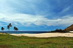 에서 가장 큰 비치인 Anakena에서 1978년에 발견된 모아...