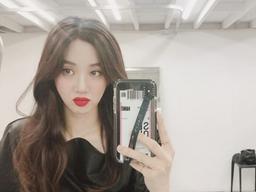 은 검은색 원피스를 입은 채 대기실에서 셀카를 찍고 있는 모습....