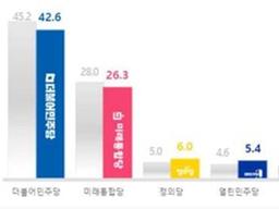 마저 50% 초반대로 하락했다. 7일 여론조사기관 리얼미터가 tbs 의뢰로 지난 4일과 6일 전국 유권자 1508명을 대상으로 정당
