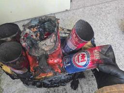 병원에서 터진 택배 폭발물의 잔해. 부탄가스 4개와 인화 물질이 담겼을 것으로 추정되는 플라스틱 통이 묶여 있었다. 독자 제공 광주의 한