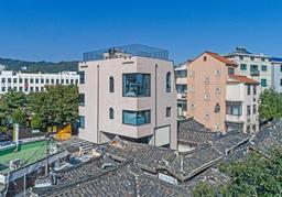 서울 종로구 북촌에 자리한 '배진하우스'. 한옥 위에 양옥을 올린 반반 건축을 선보인 것이 특징이다. 황효철 건축사진작가 제공 도로에서 한 걸음만 들어가도 검은 기와지붕이 물결치듯 넘실대는 서울 종로구 북촌. 한옥 수십 채가 빼곡하게 들어선 골목 한가운데 한옥 위로 양옥이 포개진 특이한 건물이 ...