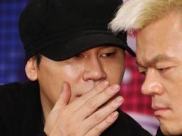 열린 SBS 서바이벌 오디션 'K팝스타3' 기자간담회에서 양현석 YG엔터테인먼트 대표(왼쪽)가 박진영 JYP 대표 프로듀서에 이야기 하고 있다. 국세청이 YG엔터테인먼트가 소속 아티스트들의 해외공연 수익을 축소 신고하고 해외로 재산을 빼돌리는 방법으로 역외