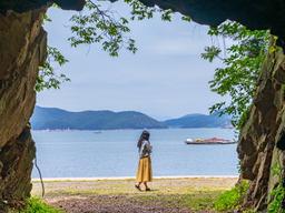 파도리 해수욕장 인근에 있는 해식동굴. 입구가 양쪽으로 나란히 뚫려 있는 것이 특징이다. 좌우 대칭 구도의 인증 사진을 남길 수 있다. 사진 인스타그램@jinu_behappy 광명동굴도 아니고, 만장굴도 아니고, 성류굴도 아니다. 광산 시절의 향수나 지질학적 역사 때문이 아니라, 그저 ‘사진빨’ 하나로...