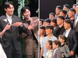 한국 축구대표팀 골키퍼 김승규와 모델 겸 배우 김진경의 결혼식 현장이 공개됐다. 김승규♥김진경 결혼식에 한국 남자축구 대표팀 총출동 손흥민, '찰칵
