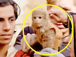 원숭이었습니다. 촬영을 할 때는 알라딘의 어깨에 원숭이 인형을 올려놓고 촬영했고, 편집 작업에서 CG 처리를 한 것입니다. 아부하면 빠질 수 없는 게 이아고죠. 아부의 천적이자 똑똑한 자파의 부하입니다. 이아고의 성우를 맡았던 사람은 바로