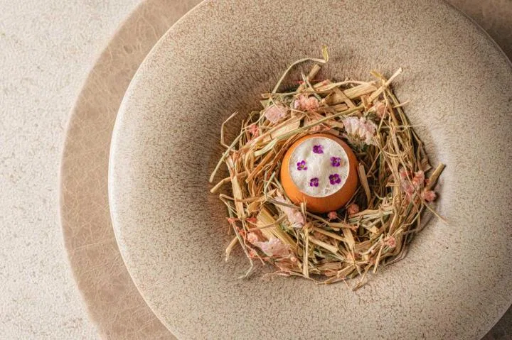 대봉감, 방아, 덕자 병어 등 한국인에게 익숙한 재료가 프렌치의 정교한 조리 기법과 만나 신선하게 다가온다. 인테리어 역시 '모던 미니멀리스트' 콘셉트로 재구성되어 세련되고 절제된 공간감을 자아낸다. 창 밖으로 펼쳐지는 반얀트리 서울의 푸른 정원의 정취가 어우러져 고급스러운 다이닝 경험을 제공한다.